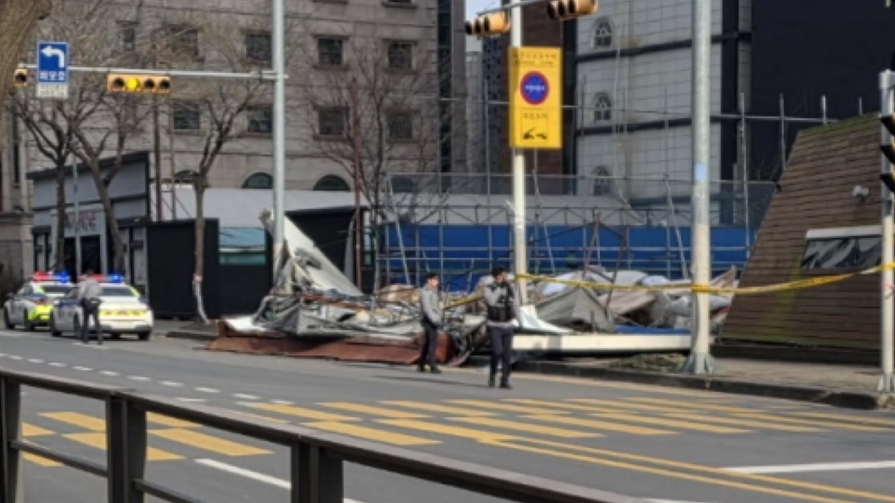 공사 현장 앞에 설치됐던 가림막이 완전히 무너져 내렸습니다.