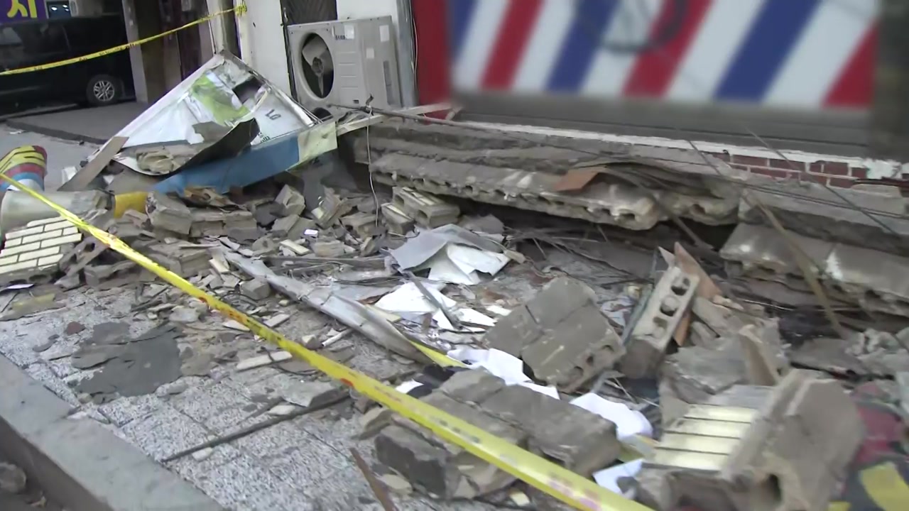 사고 현장 안은 건물 간판이 뜯겨져 나가고, 벽돌들과 전선이 엉켜 형체를 알아볼 수 없이 그야말로 아수라장이 된 모습입니다.