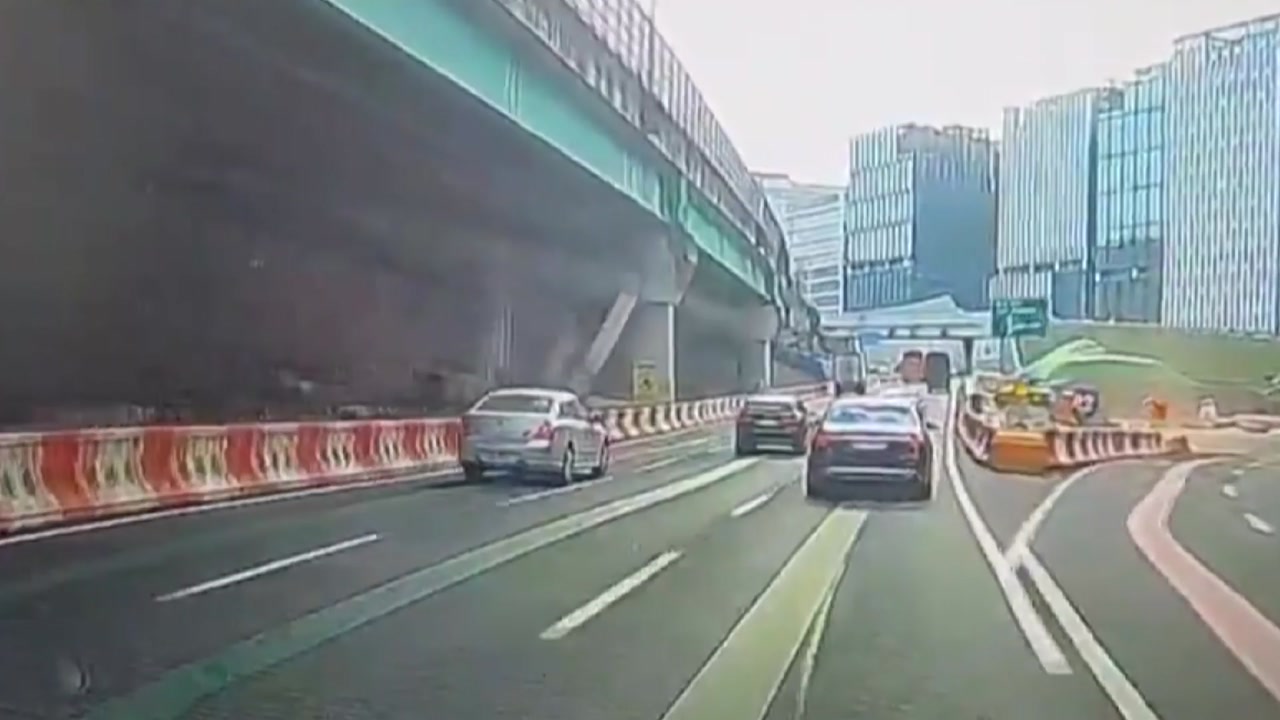 오늘 오후 2시 50분쯤인데요, 경기도 과천 별양동 과천봉담 고속도로를 달리던 차량에 갑자기 건축자재가 날아듭니다.