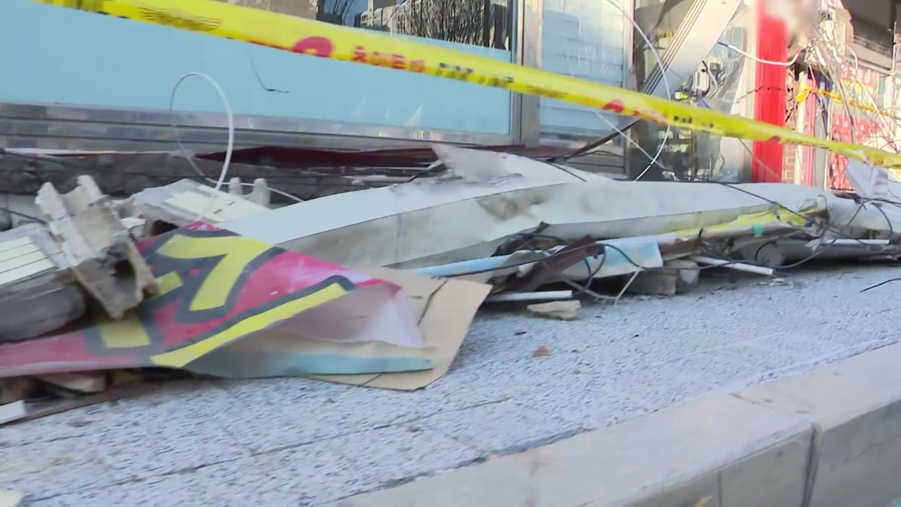 태풍급 돌풍이 도심을 덮치면서 노후 간판과 시설물이 생명을 위협하는 흉기로 돌변했습니다.