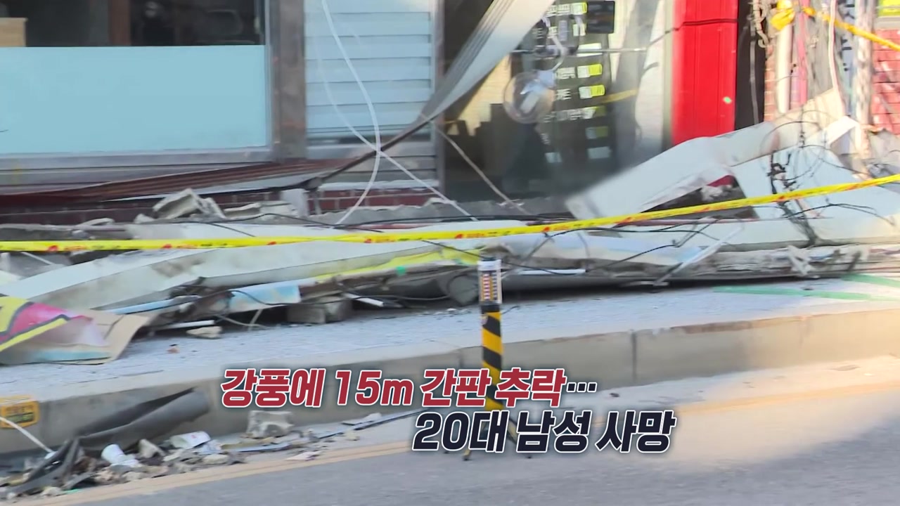 20대 남성 사망 건물에 매달린 대형 간판이 종잇장처럼 떨어집니다.
