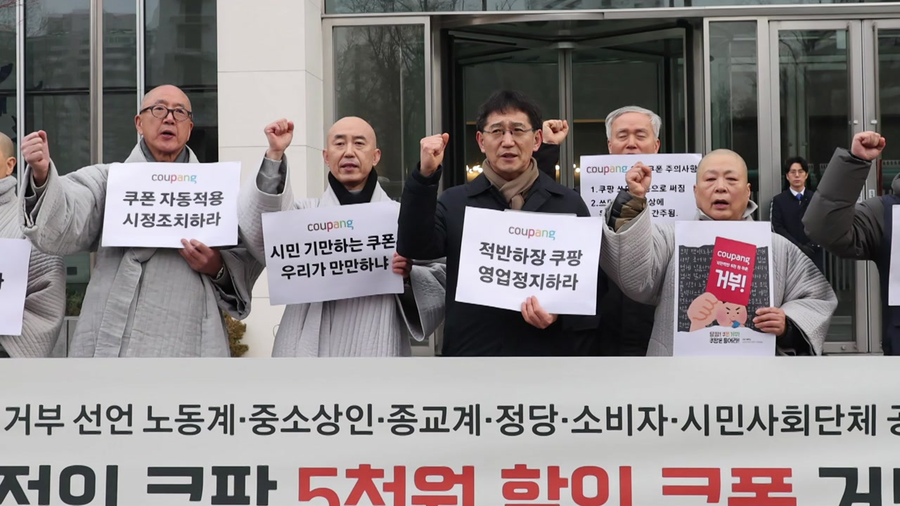 135개 시민·사회단체가 모인 ’안전한 쿠팡 만들기 공동행동’은 오늘(15일) 오전 서울 송파구 쿠팡 본사 앞에서 기자회견을 열고 쿠팡 할인 쿠폰은 떨어진 매출을 끌어올리려는 영업 전술일 뿐이라고 밝혔습니다.
