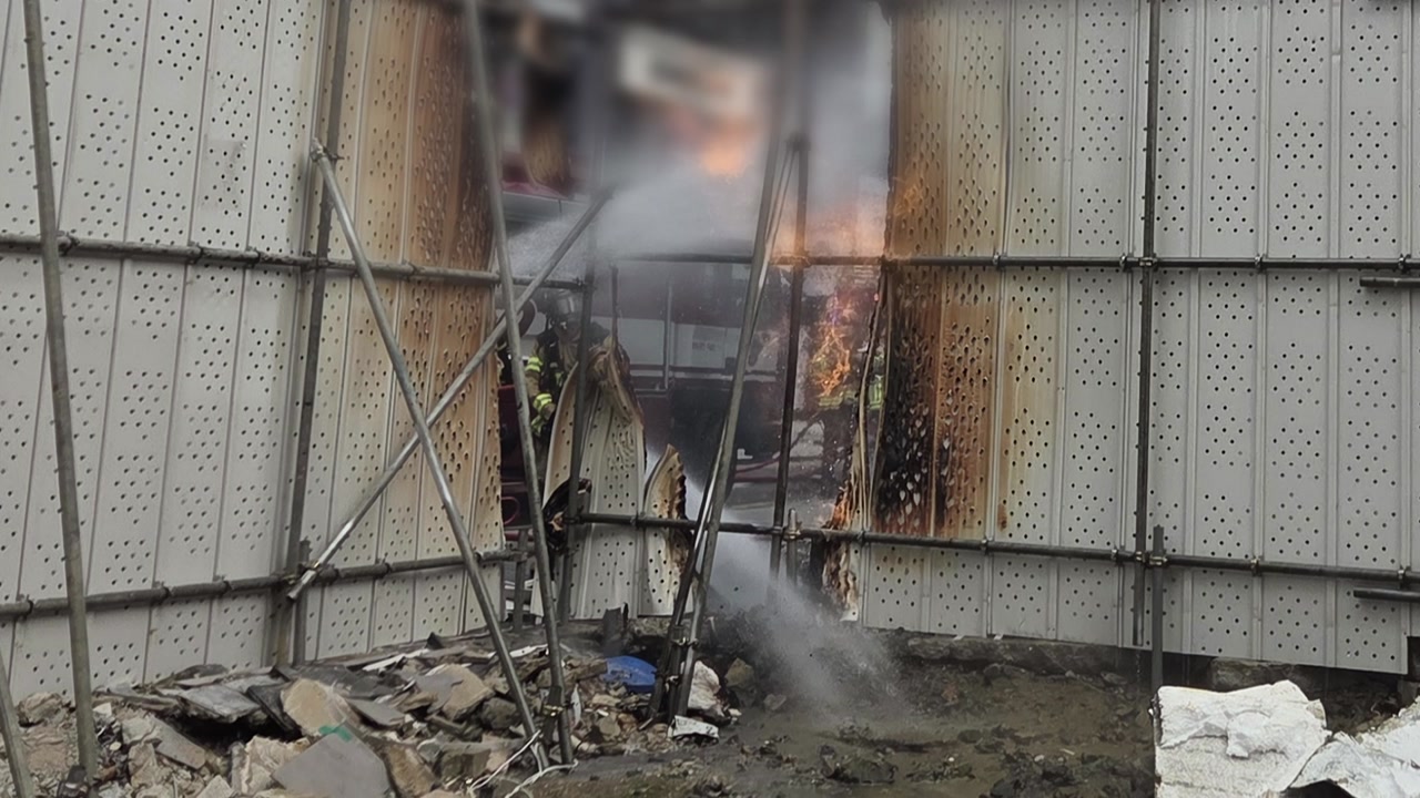 어제(15일) 낮 1시 반쯤 서울 서대문구 이화여대 근처 공사장 외벽에 불이 났습니다.