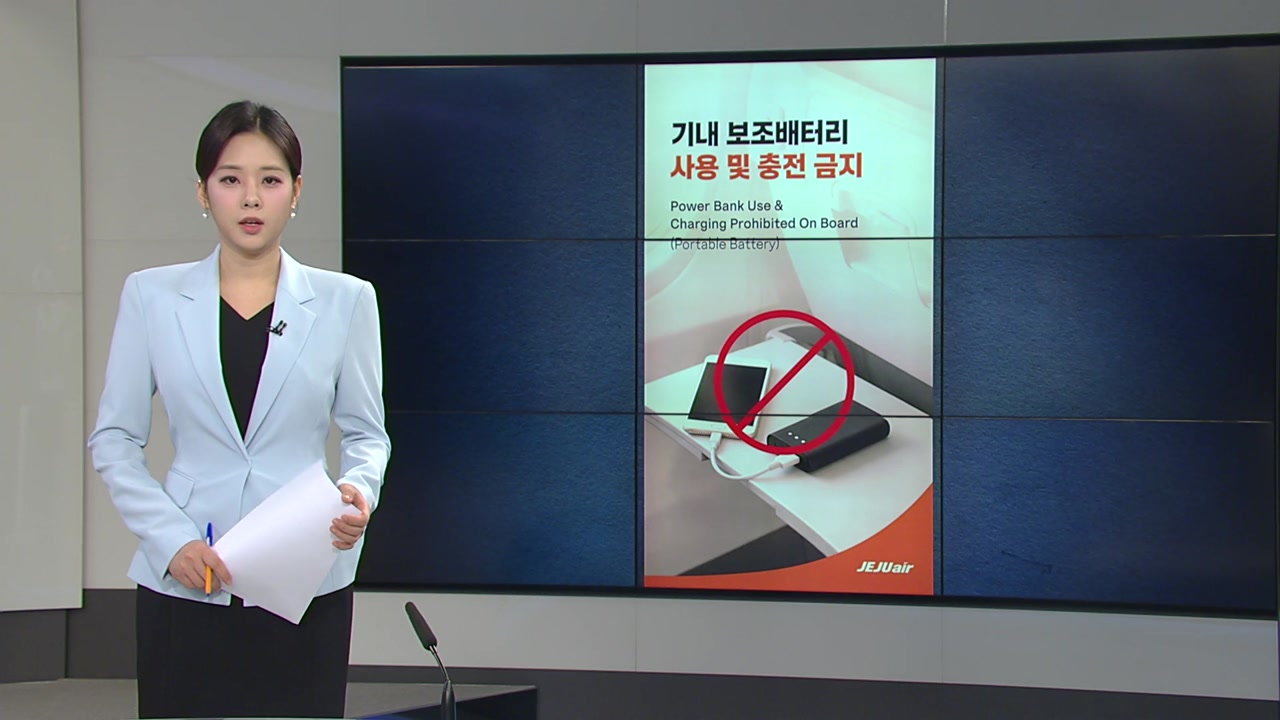 현재 국토교통부 지침은 기내에서 보조배터리의 충전을 금지하고 있는데, 제주항공은 이에 더해 기내 보조배터리 사용을 아예 금지해 리튬이온 배터리로 인한 화재 위험을 낮춘다는 방침입니다.