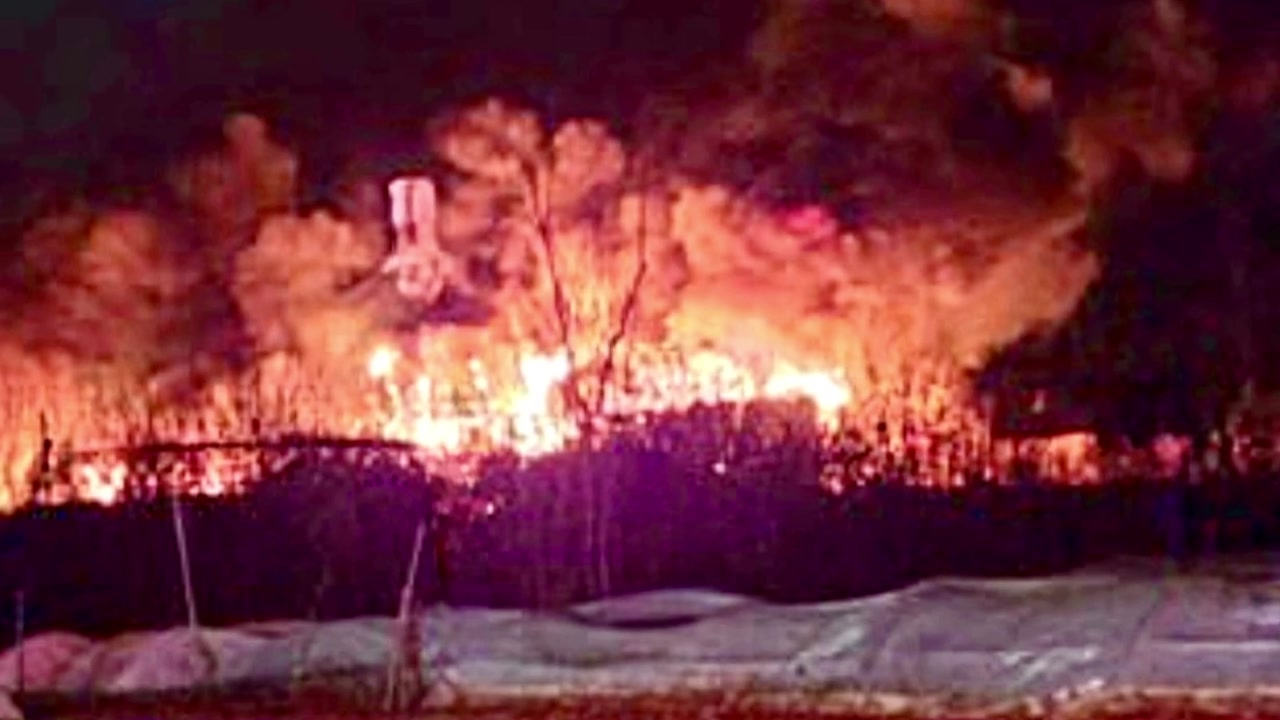 네, 비닐하우스에서 시뻘건 불길이 치솟고 있습니다.
