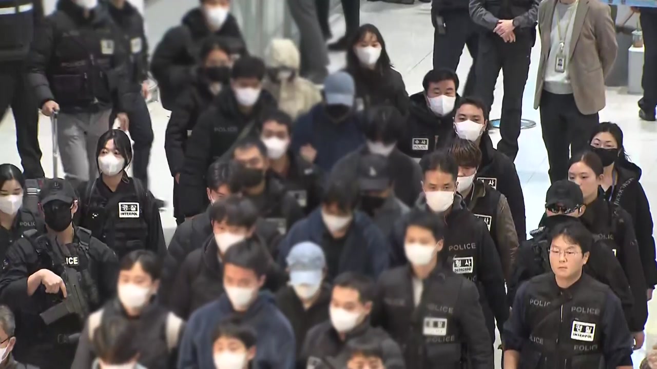 피의자들은 마스크를 쓰고 고개를 숙인 채 입국장에 등장했는데요, 귀국 직후 6개 지방경찰청으로 압송돼 조사를 받게 됩니다.