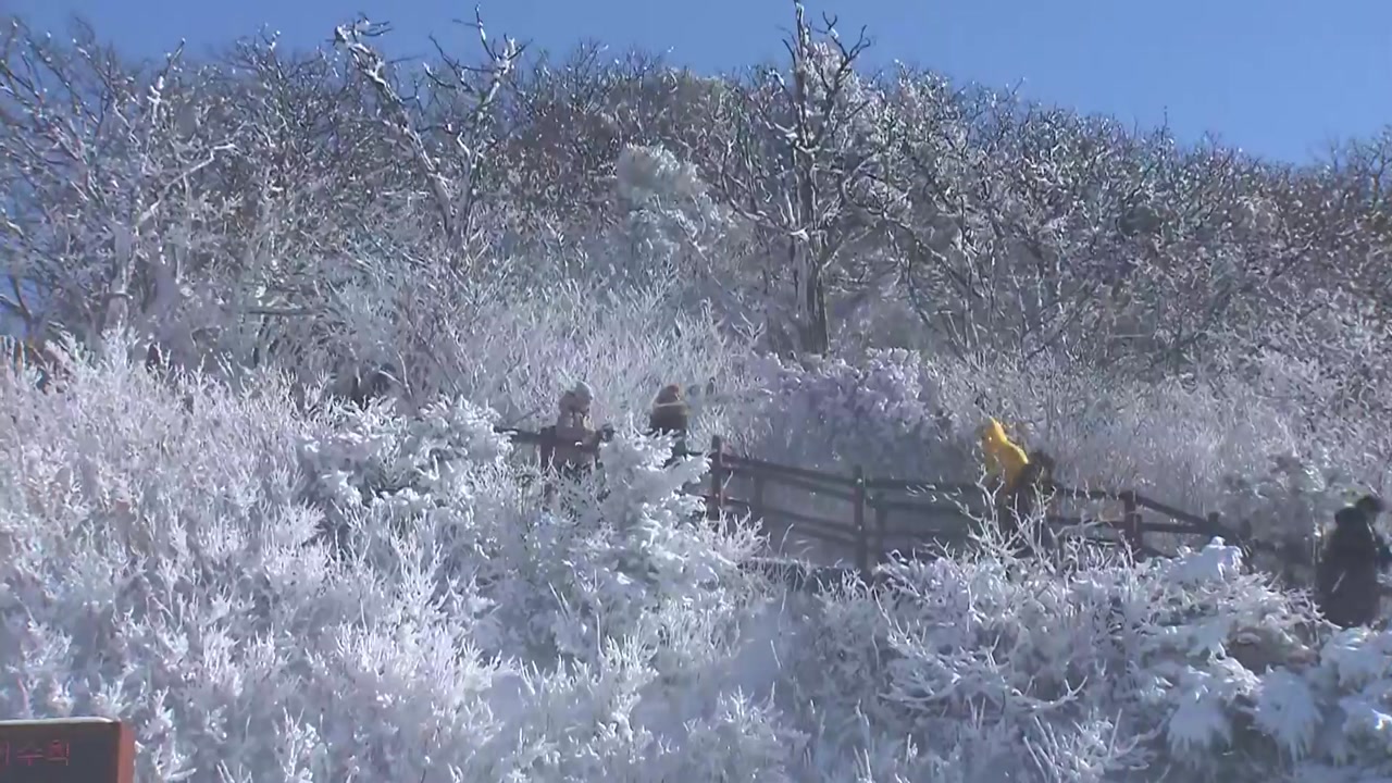 [ 이해진·조민기 / 부산 등산객 : 부산에 눈이 안 와서 눈 보러 덕유산 왔는데 일단 뽀득뽀득 거리는 소리가 너무 좋아요. 그리고 너무 예뻐요. 하얀색 눈 너무 좋습니다. 예쁘지 않아? (많이 예쁜 거 같아요.)]
