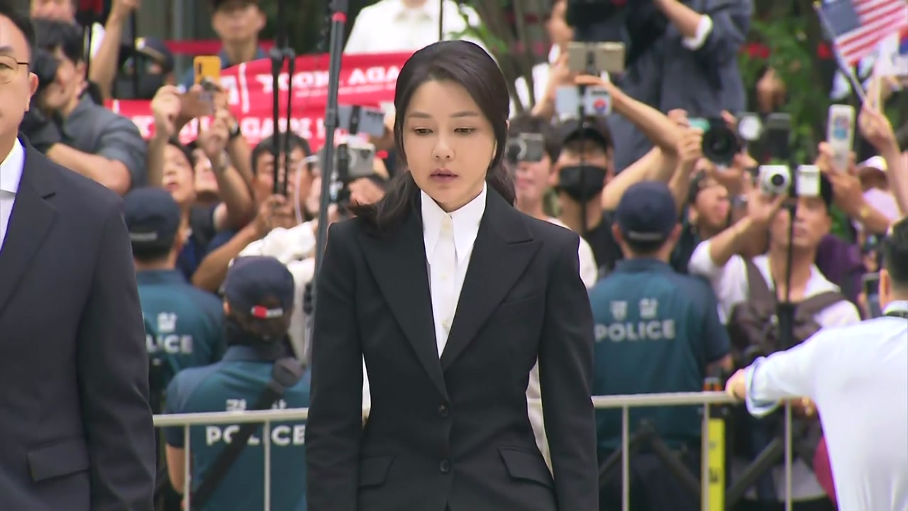 역대 영부인 가운데 처음으로 구속기소 된 김건희 씨, 가슴에 수용번호가 적힌 배지를 달고 법정 피고인석에 앉은 모습까지 공개됐습니다.