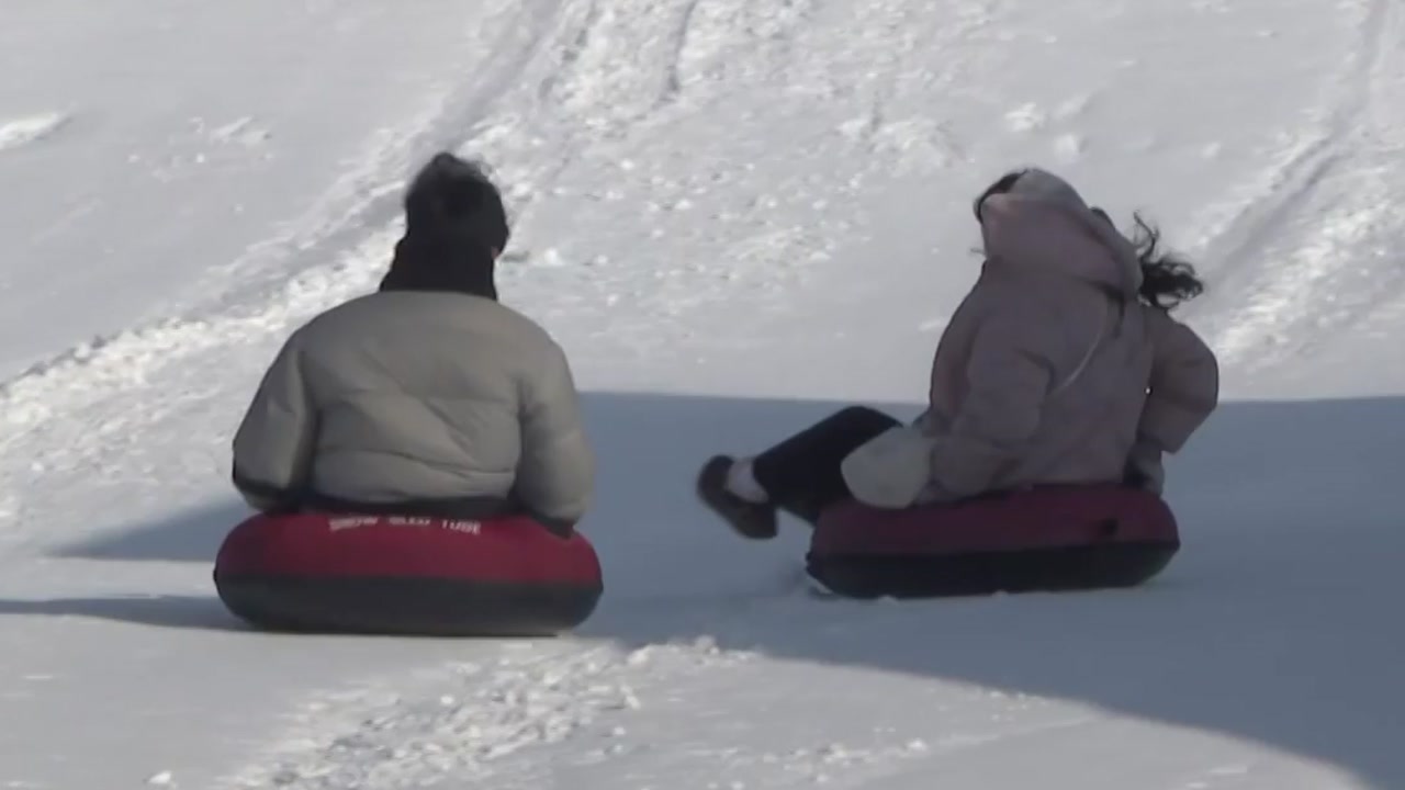 튜브를 타고 눈 위를 미끄러지듯 내려오는 방문객들의 신이 난 함성 소리가 사방에서 울려 퍼지고 있습니다.