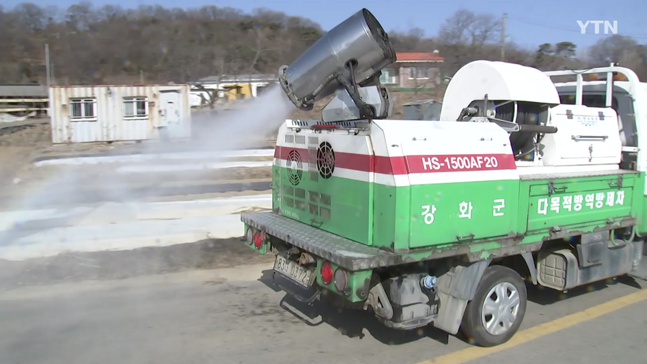 방역 차량이 쉴 새 없이 오가며 소독약을 뿌리고, 방역복을 입은 조사관들이 출입을 통제합니다.
