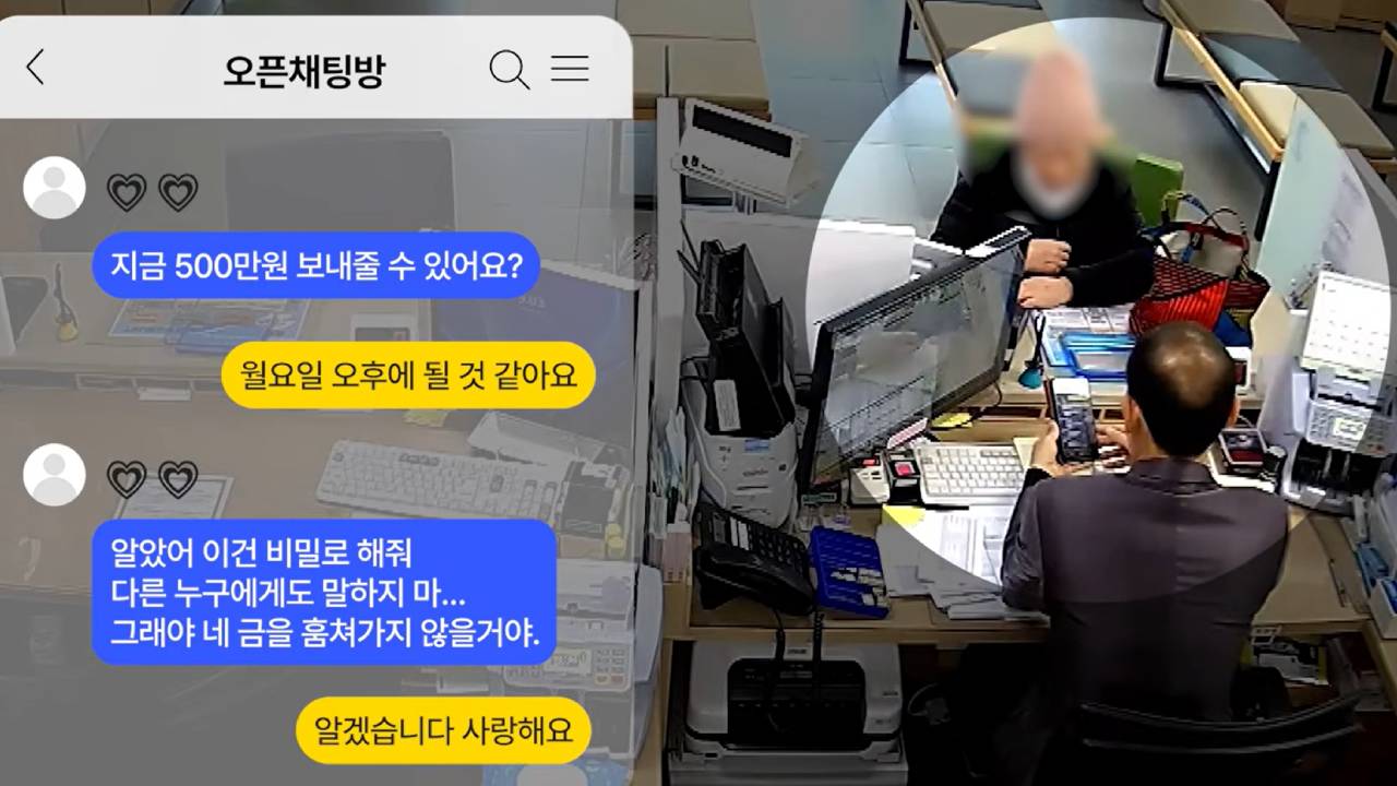 당시 농협 직원이 송금 목적을 묻자 A 씨는 휴대전화 화면을 보여줬고, 해당 화면에는 카카오톡 오픈채팅방 대화 내용이 담겨 있었다. 상대방은 “지금 500만 원을 보내줄 수 있느냐”고 요구했고, A 씨는 “월요일 오후쯤 가능하다”고 답했다. 이어 상대방이 “이건 비밀로 해달라”, “다른 누구에게도 말하지 말라”고 하자 A 씨는 "알겠다"며 "사랑한다"고 전했다.