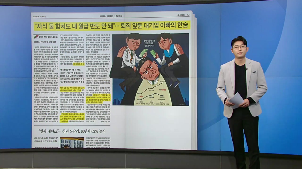 먼저 어제에 이어 세대 간 벌어진 격차를다룬 조선일보 기사 가져왔습니다.