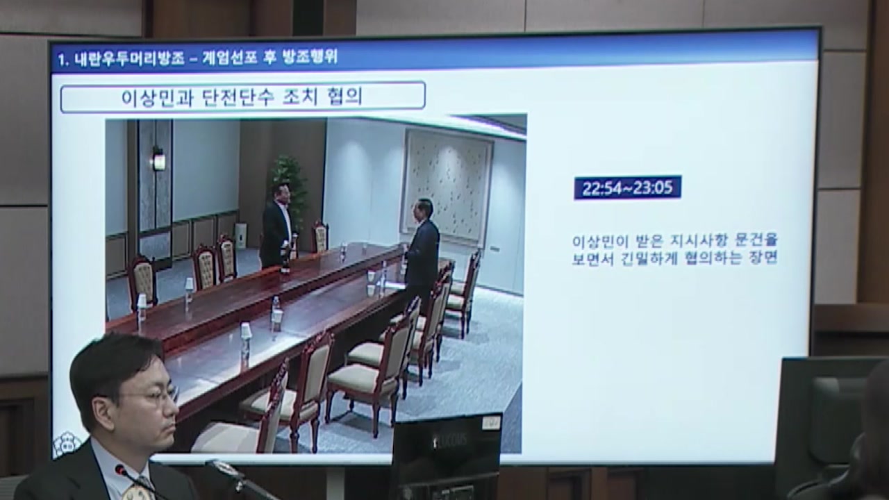 그렇습니다. 이상민 전 행안부 장관은 일단 사전에 비상계엄 자체를 내가 논의하거나 공모한 적이 없다. 그런데 비상계엄 선포를 하는 그 자리에 내가 가서 몇 분 만에 공모에 가담한다는 것이 논리상 말이 되지 않는다라는 취지로 사전 공모 자체를 부인하고 있는 상황이고요. 뿐만 아니라 단전단수 관련한 지시를 윤 전 대통령으로부터 받은 적도 없고 내가 그 지시 자체를 하달한 적도 없다고 지금 모든 혐의에 대해서 부인하고 있는 상황입니다.