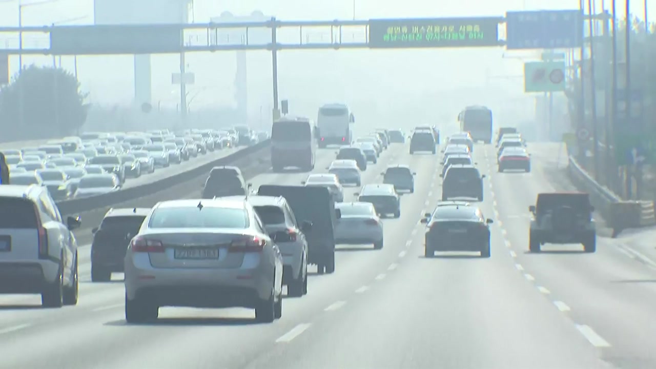 이어서 서해안선 서평택분기점도 미세먼지로 시야가 뿌연 데다 도로도 꽉 찼습니다.