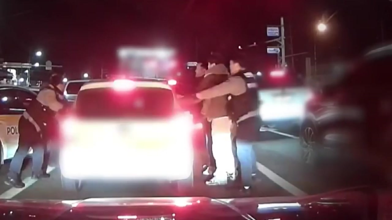 잠시 뒤 신호에 걸리자 경찰이 다급하게 차량으로 뛰어가는데요.