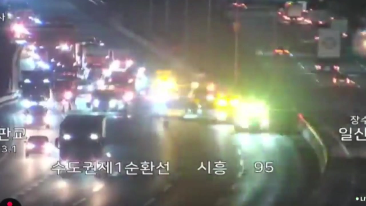 오늘(25일) 새벽 0시쯤 경기 시흥시 수도권제1순환고속도로 판교 방향 소래터널 부근에서 승합차와 승용차 택시 등 3대가 잇따라 부딪혔습니다.