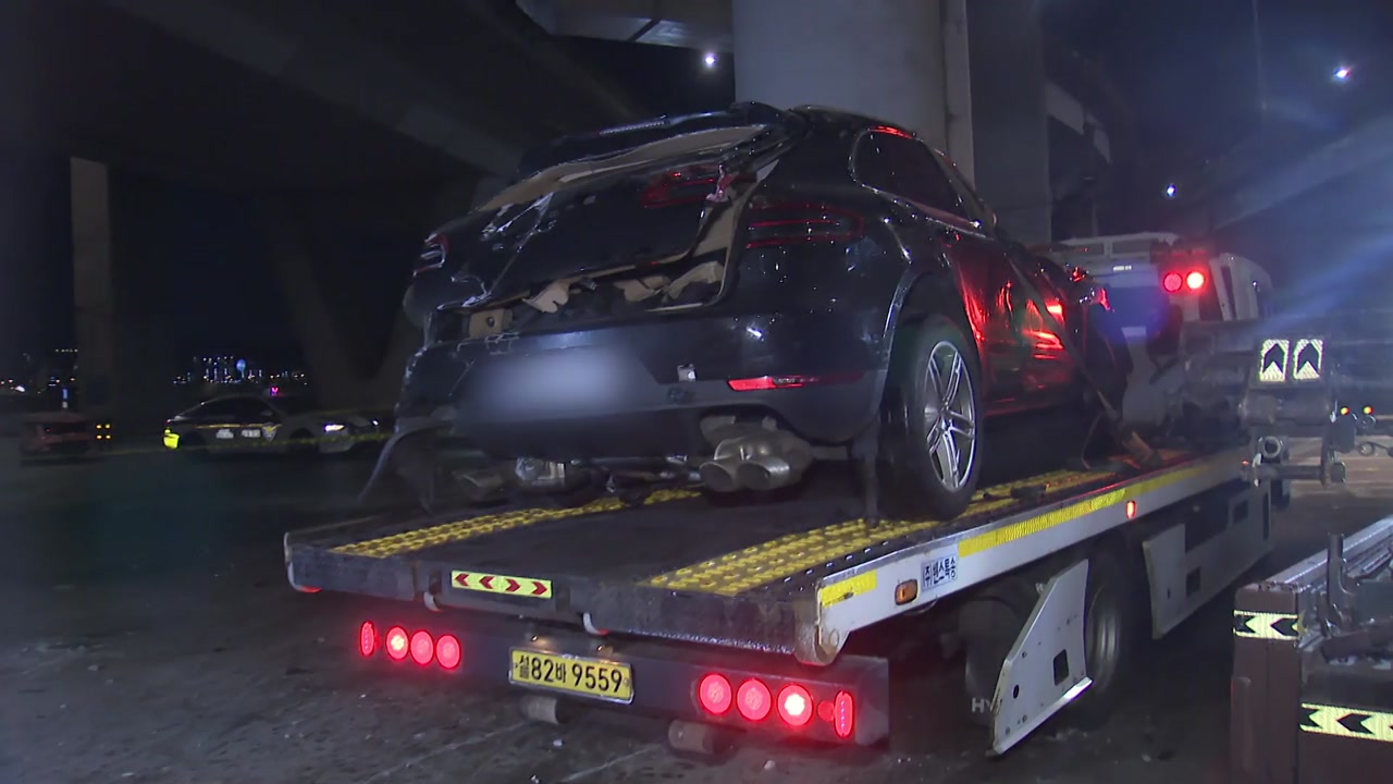 반포대교 북단에서 강변북로 구리 방향으로 달리던 포르쉐 SUV 차량이 다리 난간을 들이받고 아래로 추락한 겁니다.