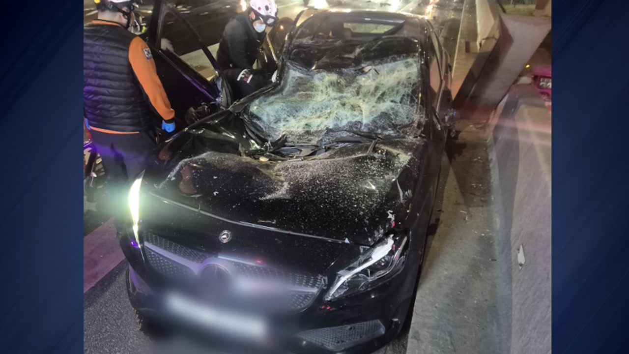 그나마 진짜 천만다행인 상황이 아닌가 싶습니다. 포르쉐 차량을 운전하던 30대 여성 운전자뿐만 아니라 지금 밑에서 피해를 당한 차량도 있어요. 둔치다 보니까 차량이 들어갈 수가 있고 거기에 있던 다른 수입차량 운전자가 타고 있다가 그야말로 청천벽력 같은 일이 벌어진 거거든요. 위에서 갑자기 차량이 떨어진 거 아닙니까? 그런데 이 두 차 운전자 모두 큰 피해 없이 단순한 타박상 정도의 경상에 그친 것 같습니다. 어제 8시 40분쯤에 이렇게 반포대교 난관을 뚫고 잠수교 인근 한강 둔치로 차량이 떨어진 건데 말씀드린 것처럼 운전자는 약물에 취한 상태였던 것으로 추정되고 있고요. 경찰이 긴급체포한 상태입니다.