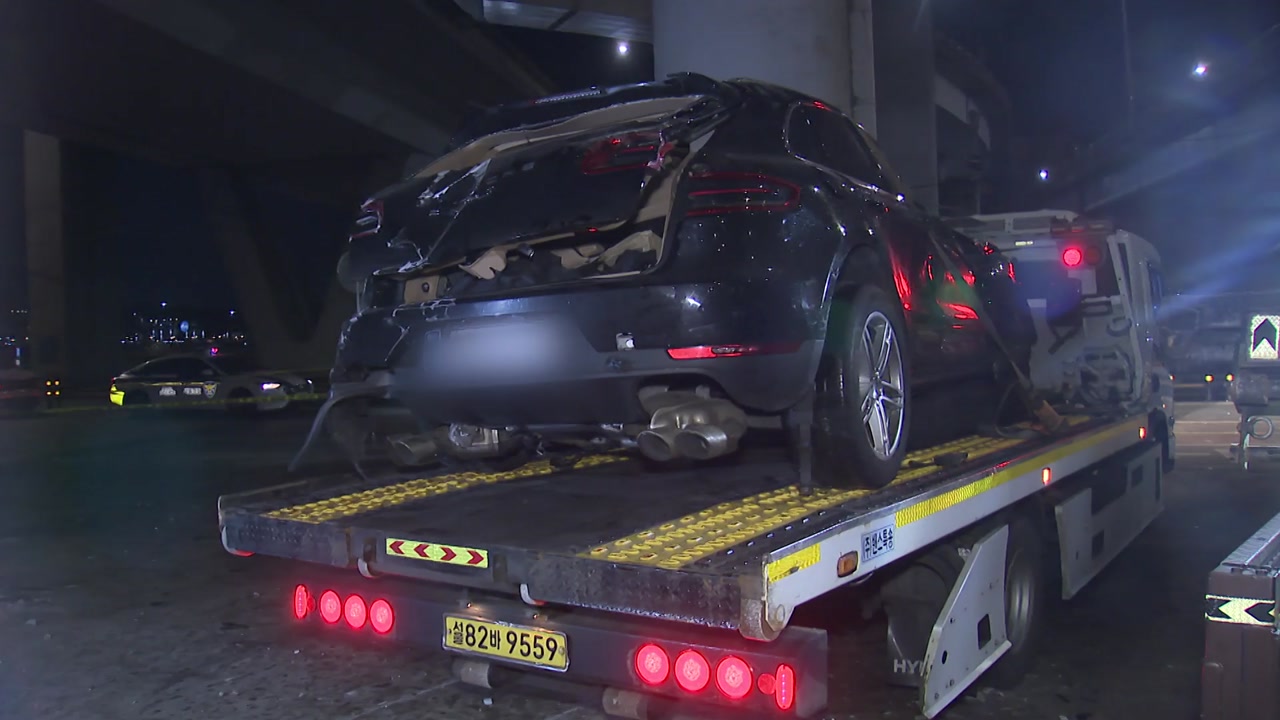 서울 반포대교 북단을 달리던 포르쉐 SUV 차량이 다리 난간을 들이받고 한강 둔치로 곤두박질친 겁니다.