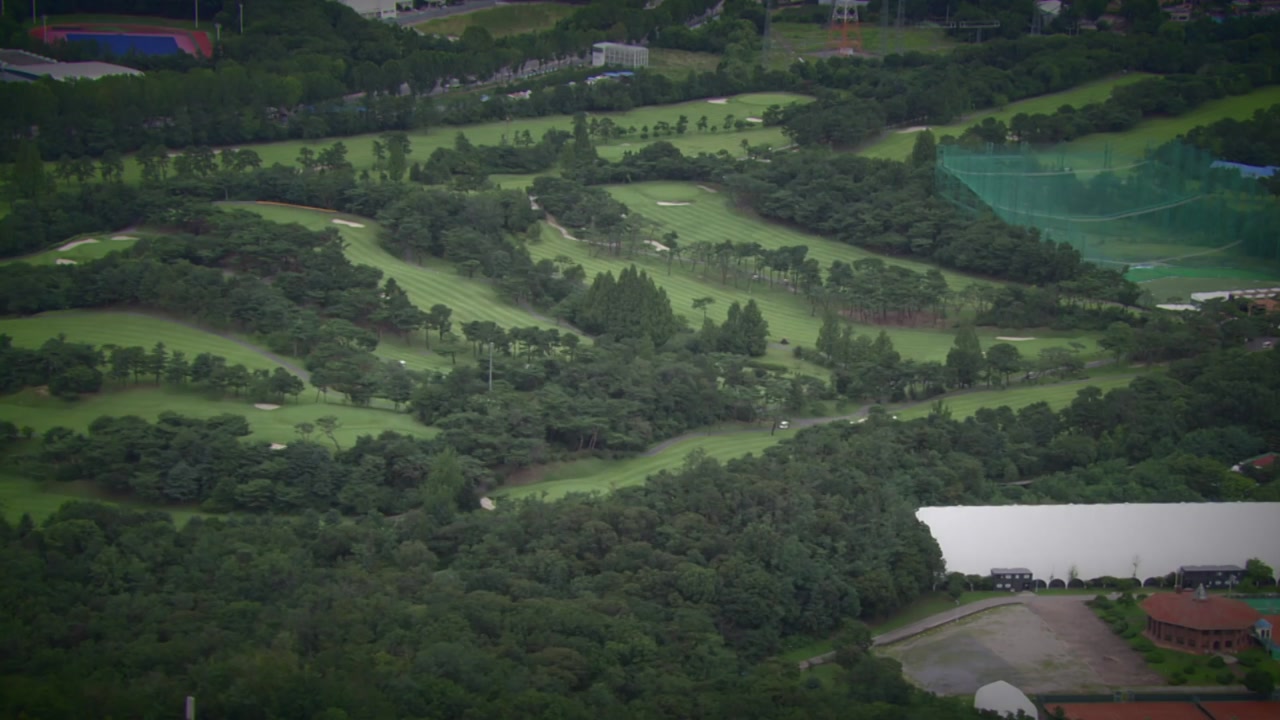그린과 벙커, 그 밖에 여러 시설물이 주변 경관과 어우러져 하나를 이루는 골프 코스.