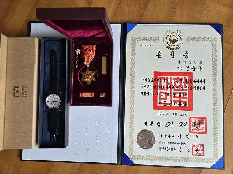 길준용 전 서산 부석중학교 교장은 최근 자신의 소셜미디어(SNS) 계정을 통해 "3년 전 정년퇴직할 때 거부했던 근정훈장을 충남교육청에서 받았다"고 밝혔다.