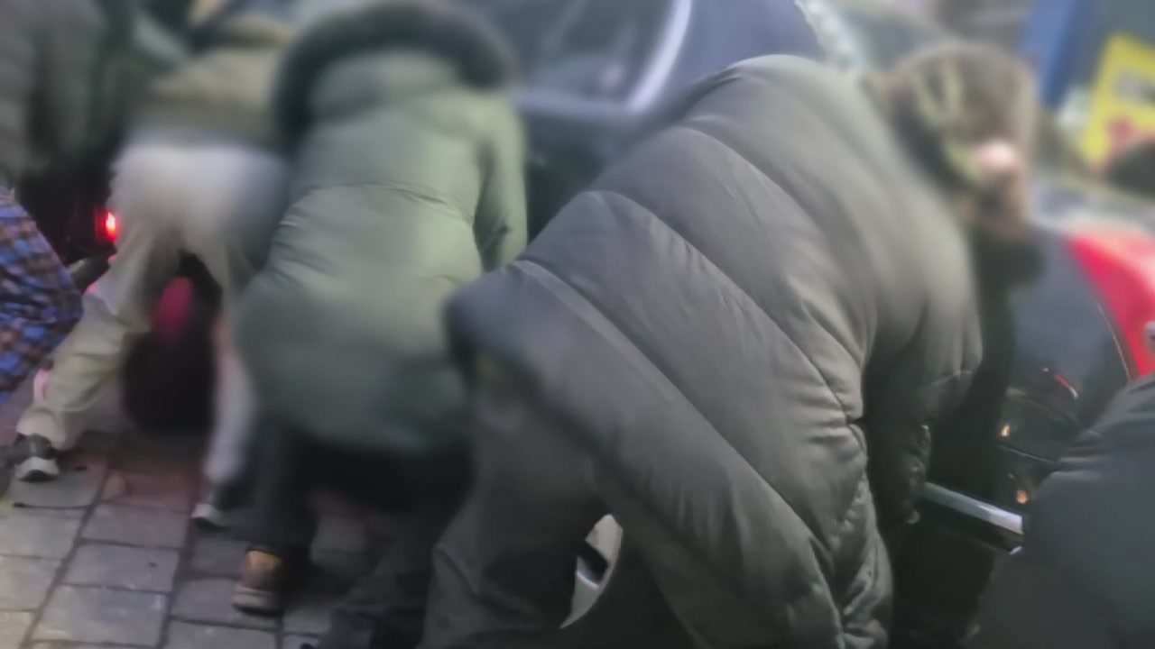 사고 충격으로 앞서 가던 차량이 인도로 밀려나며 길을 가던 30대 여성을 들이받았습니다.