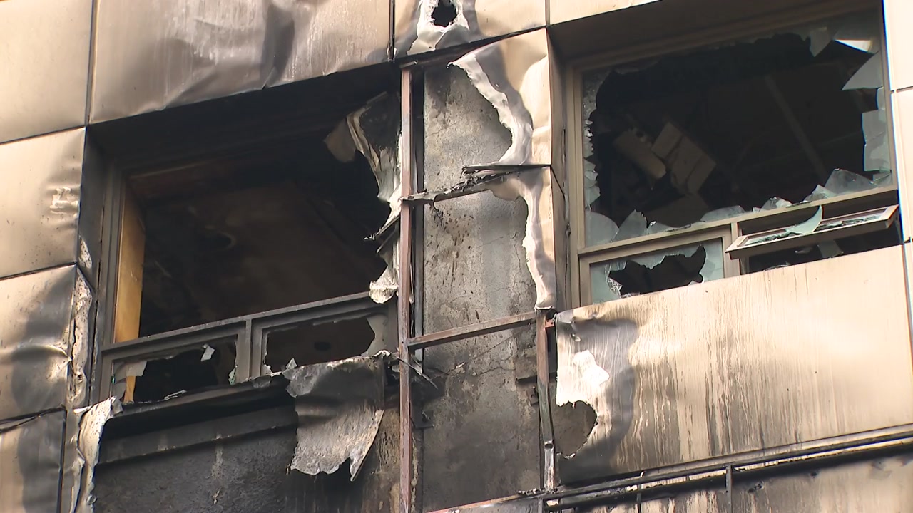 건물 외벽이 시커멓게 그을렸고, 유리창 곳곳이 깨졌습니다.