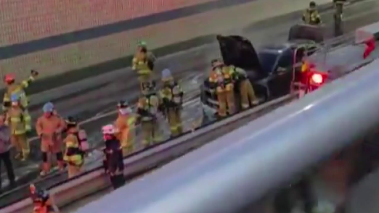 어제(19일) 저녁 6시 30분쯤 경기도 과천시 남태령 네거리 지하차도를 달리던 차량에서 불이 났습니다.