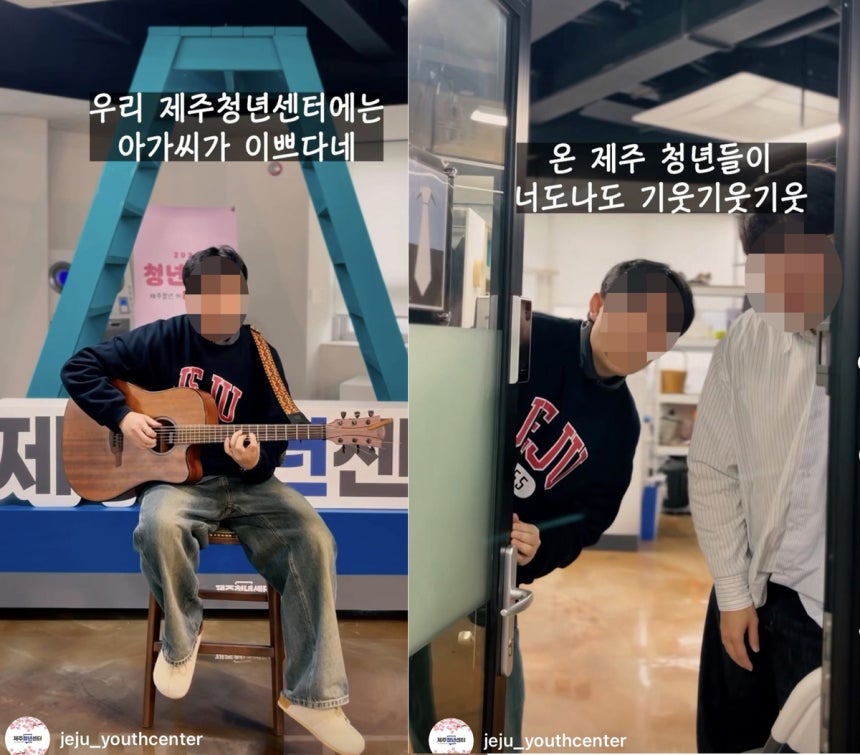 문제가 된 게시물은 제주청년센터 동아리 멤버 모집 홍보 영상이다. 영상에는 한 여성 직원을 두고 가요 '담배가게 아가씨'를 개사해 "제주청년센터에는 아가씨가 이쁘다네" "온 제주 청년들이 너도나도 기웃기웃. 그러나 그 아가씨는 새침데기" 등의 표현을 사용했다.