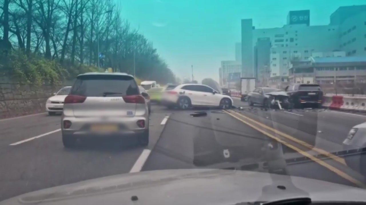 오늘(28일) 아침 8시쯤 서울 서부간선도로 성산대교 방향 철산교 인근에서 차량 4대가 부딪혔습니다.