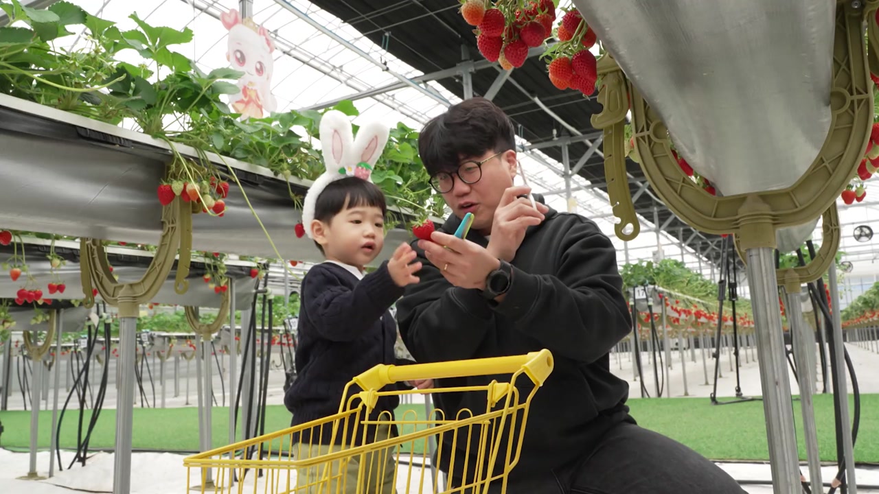 딸기 수확 체험장에서는 아이들이 올해 마지막 봄 딸기를 직접 골라 따고 맛보며 달콤함에 푹 빠져있습니다.