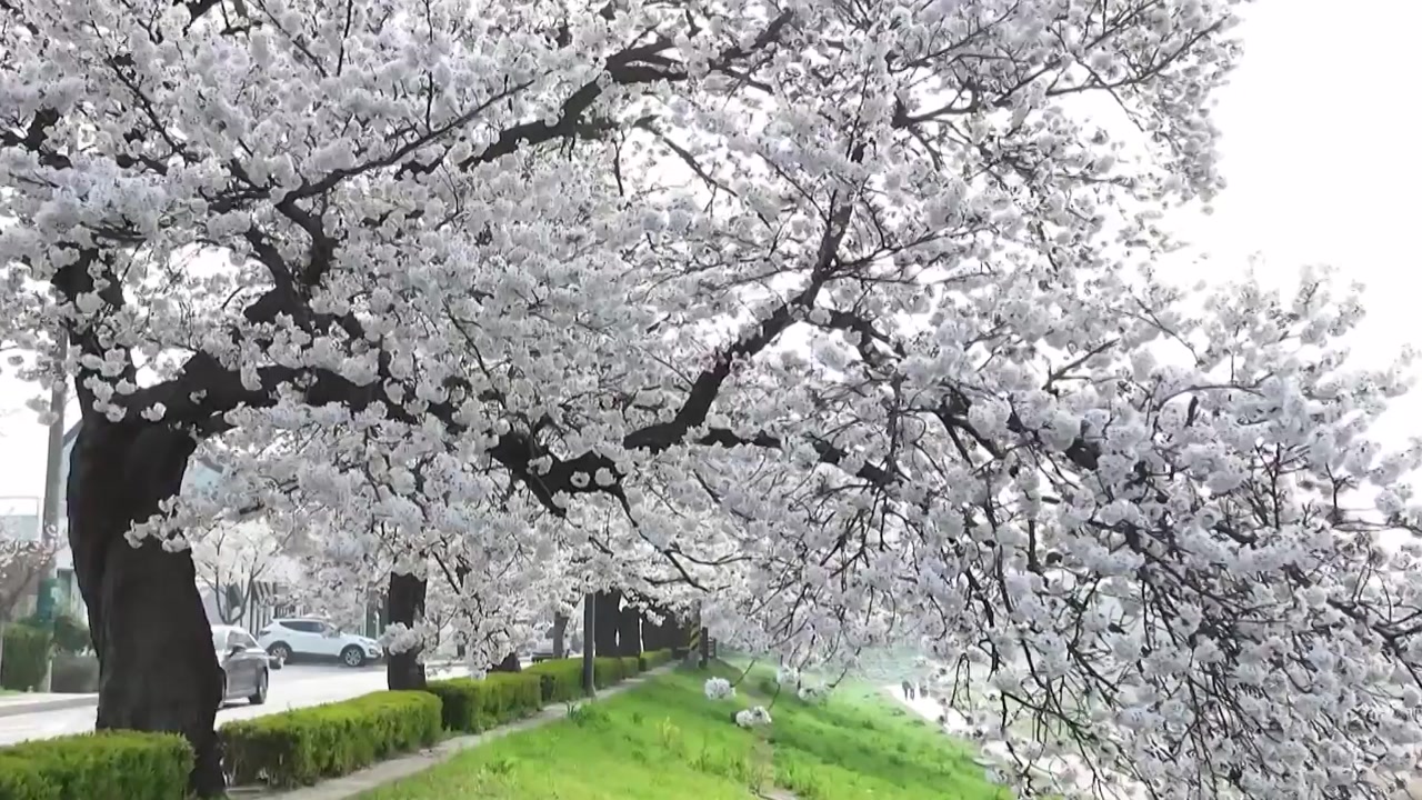전국 곳곳이 벚꽃으로 물든 가운데, 전북 정읍에도 활짝 핀 벚꽃이 절정을 이뤘습니다.