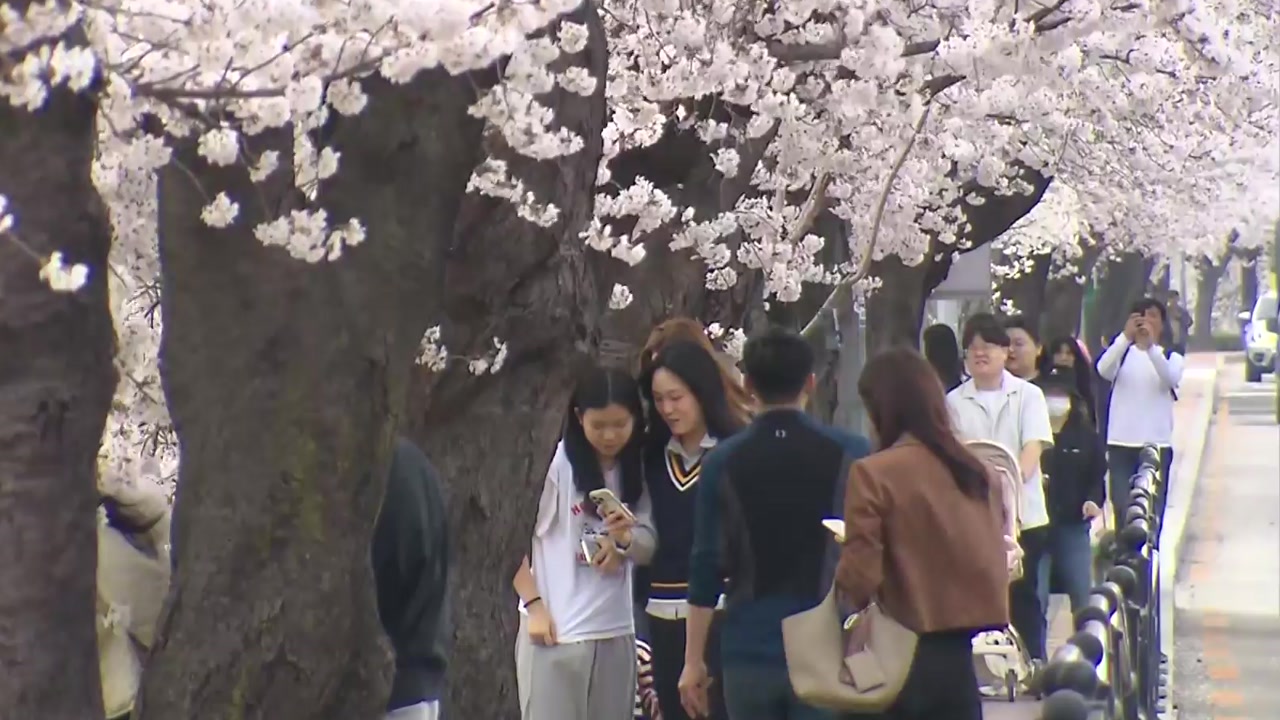 예년보다 빠르게 찾아온 벚꽃 물결에 상춘객들의 웃음소리가 끊이지 않고 있습니다.
