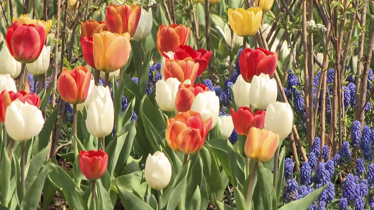 1만㎡ 규모의 정원에 튤립과 수선화, 무스카리 등 100여 종 120만 송이가 한데 어우러져 봄꽃 물결이 일고 있습니다.