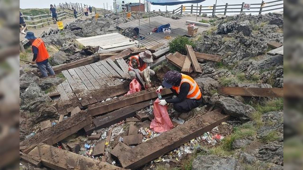 문제는 음식물과 페트명, 비닐, 과자 봉지 등 각종 생활 쓰레기가 탐방로 주변은 물론 정상부와 고지대 화장실 인근까지 곳곳에 방치되고 있다는 것이다. 특히 일부 탐방객이 데크 틈이나 눈에 띄지 않는 공간에 쓰레기를 밀어 넣는 사례도 확인됐다.
