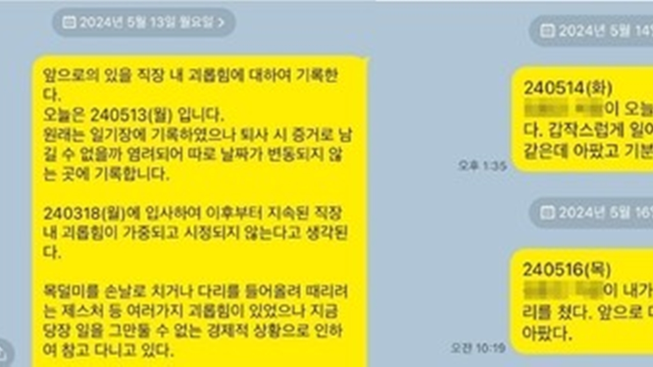 고 방유림 씨가 자신의 카카오톡에 남긴 피해 기록들ⓒ연합뉴스
