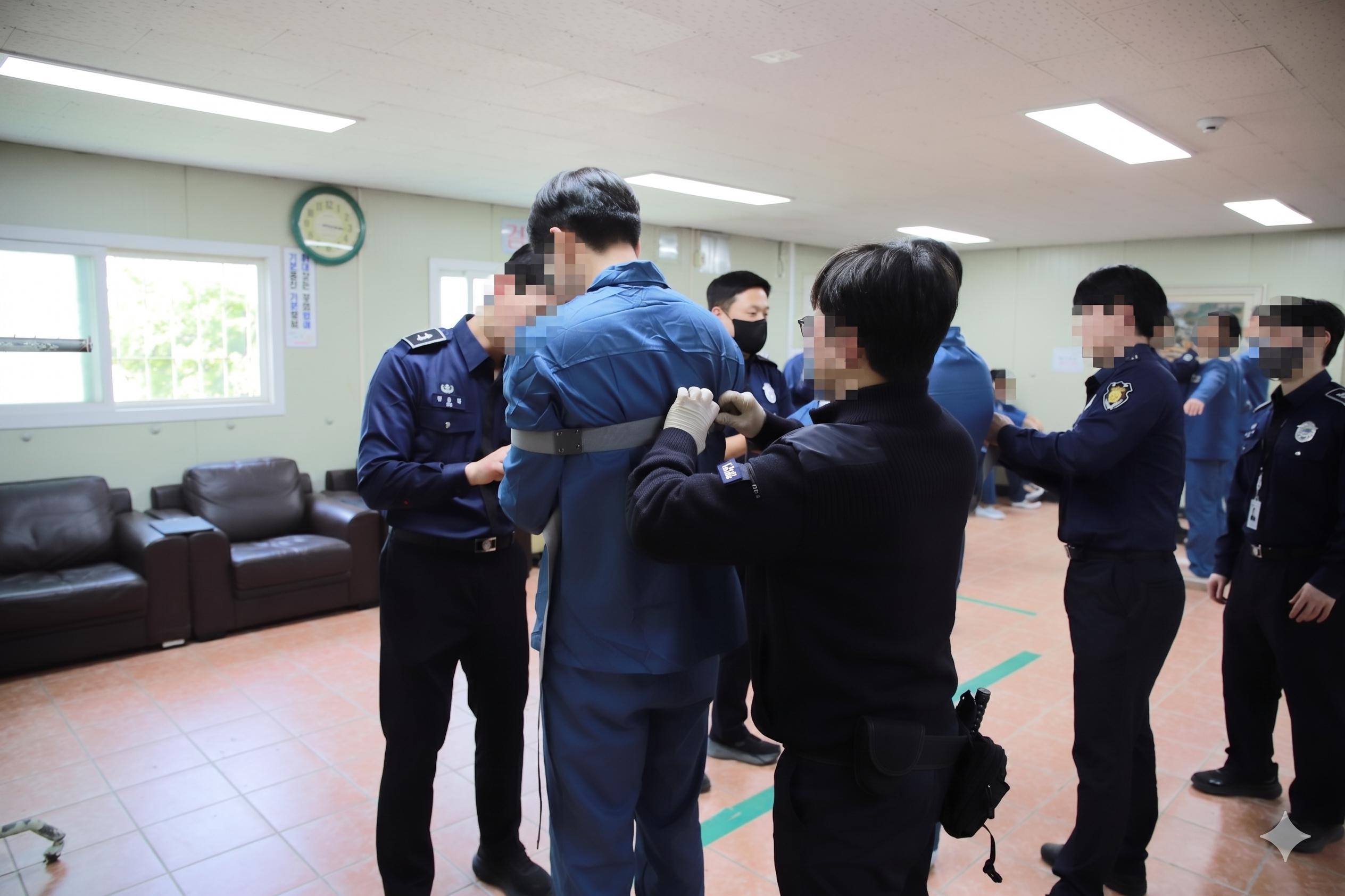 법조 기자단은 휴대전화를 포함한 모든 전자기기를 반납하고 수용복으로 갈아입는 것으로 체험을 시작했습니다. 까다로운 신원 확인과 신체검사 등 입소 절차를 거쳤습니다. 가족이나 지인에게 입소 사실을 알릴지도 결정해야 하고 수술과 질병 여부도 확인했습니다.