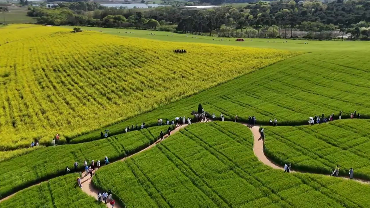네, 이곳에서는 노란 유채꽃과 싱그러운 청보리밭이 어우러진 그림 같은 풍경을 만나볼 수 있는데요.