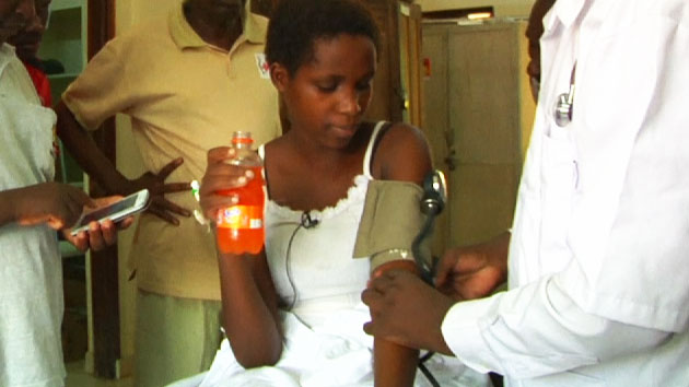 19살 신시아 차로티크, 목이 무척 마른지 혈압을 잴 때도 음료수 병을 놓지 않습니다.