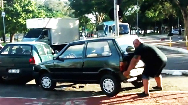 순간, 한 남성이 등장해 차를 번쩍 들어 올리는데요!