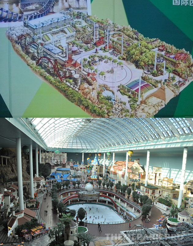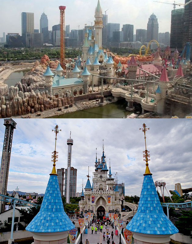 하지만 조감도와 전체적인 외관 디자인, 심지어 세부 놀이기구와 위치까지 우리나라 잠실에 위치한 롯데월드와 매우 흡사한 모습입니다.