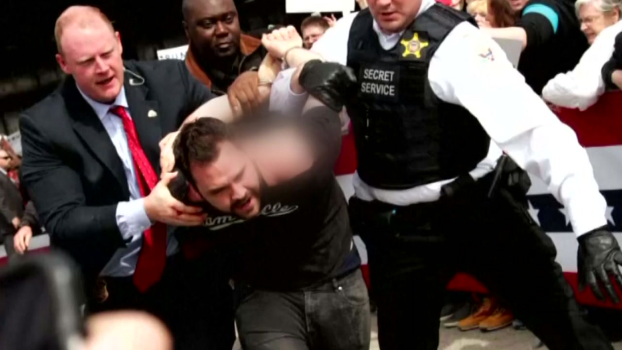 트럼프가 연설하는 도중 청중 한 명이 단상으로 돌진하자 트럼프는 연설을 멈춘 채 몸을 움츠렸고, 4명의 경호원이 단상으로 뛰어 올라와 트럼프를 둘러쌌습니다.
