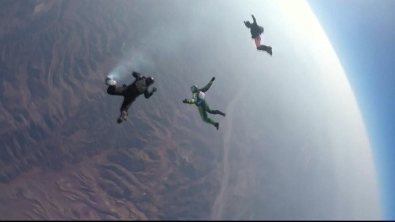 이 낙하 장면은 미국 폭스 방송에 의해 생중계됐습니다.