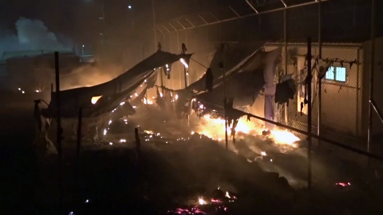 큰 불길에 휩싸인 시설은 그리스의 한 난민촌입니다.