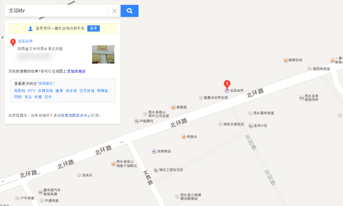 바이두 검색 결과 해당 업소는 중국 산시 성 베이환루 지역에 위치한 노래방으로 나타났다.