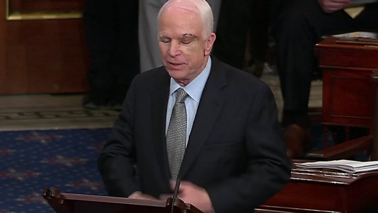 매케인 의원은 뇌종양 진단을 받고 입원한 지 일주일 만에 상원에 복귀해 연설에 나섰습니다.