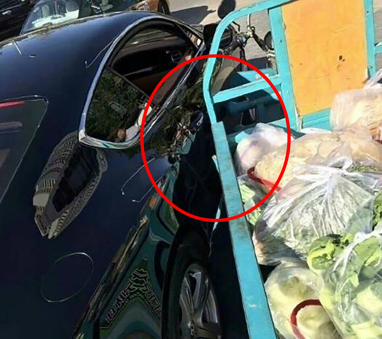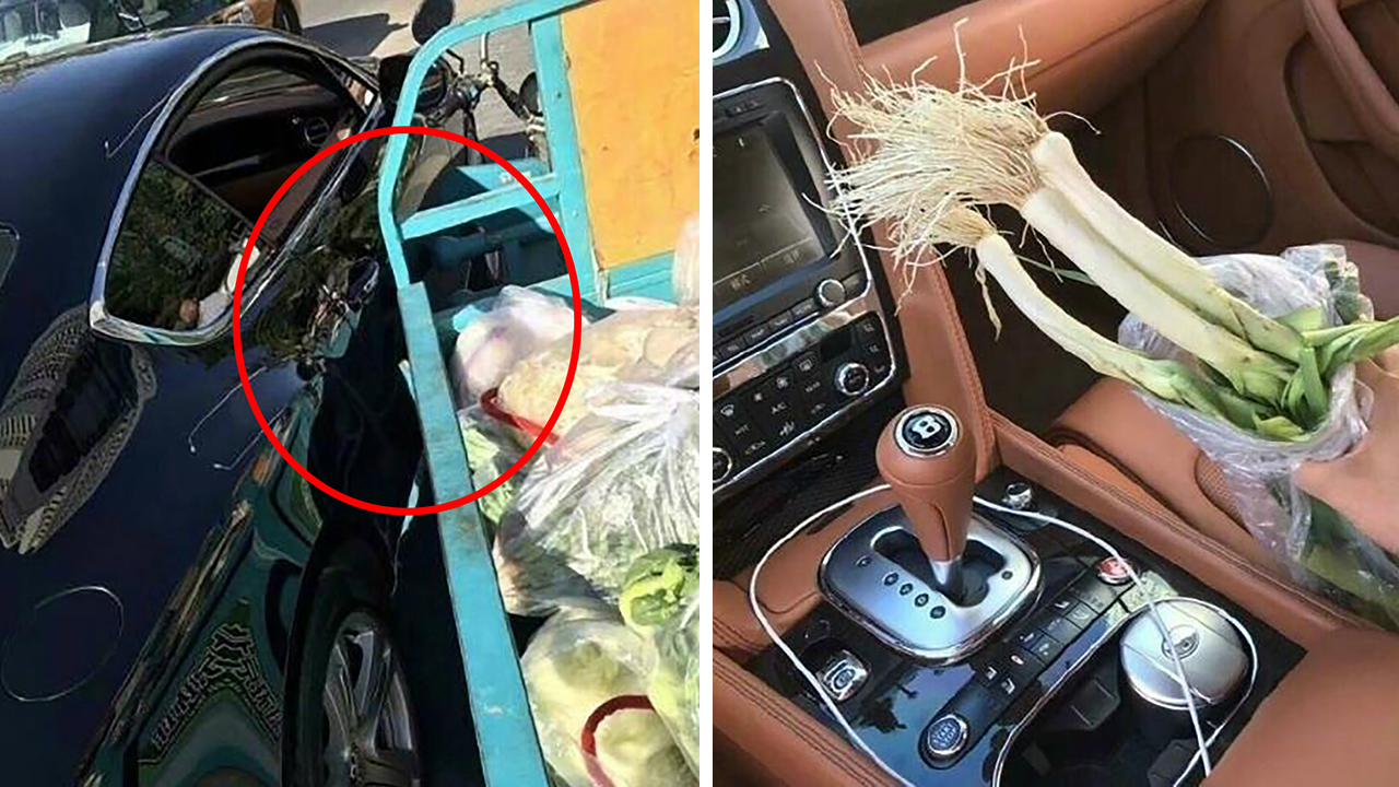 지난 25일(현지 시각) 삼륜 오토바이를 타고 길에서 채소를 팔던 노점상이 실수로 검은 벤틀리 차량 옆면을 긁었다고 상하이스트 등 현지 매체들이 전했다.