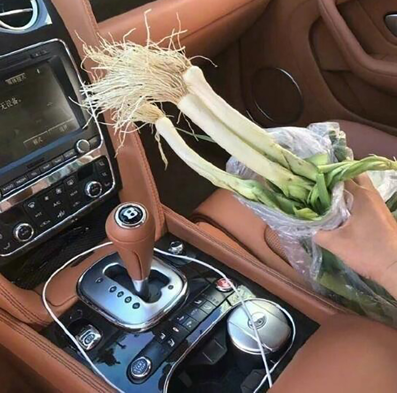 이에 그는 고민 끝에 자신이 팔고 있던 대파를 벤틀리 조수석 안으로 넣었다. 대파에는 흙과 물이 흥건하게 묻어 있었다.