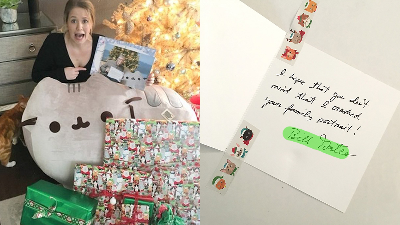 여성의 레딧을 보고 이 사실을 알아낸 빌 게이츠는 그녀가 좋아할만한 선물을 잔뜩 준비했다. 30인치가 넘는 거대 고양이 인형과 여성의 가족과 고양이들을 표현한 액자, 고양이 관련 책 등이 줄줄이 배달됐다.