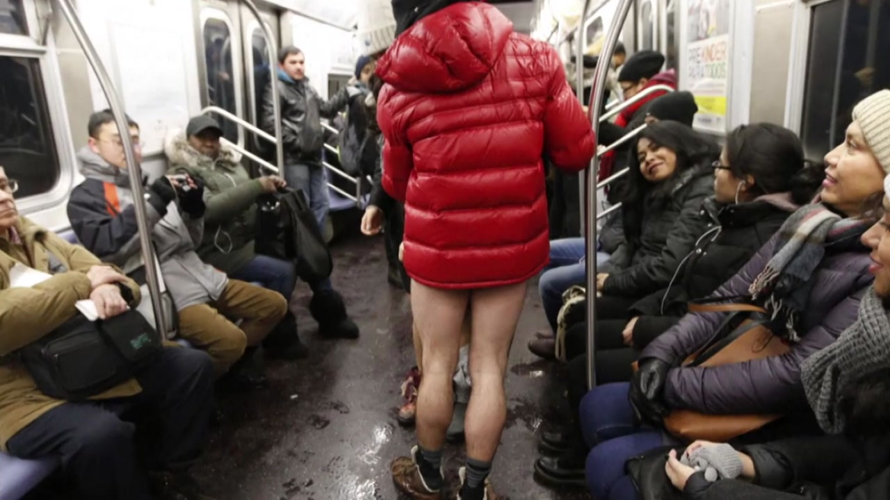 미국 동부가 한파로 몸살을 앓고 있는 가운데 현지 시간 8일 뉴욕에서는 영하 8도의 강추위 속에 '바지 벗고 지하철 타기' 행사가 열렸습니다.